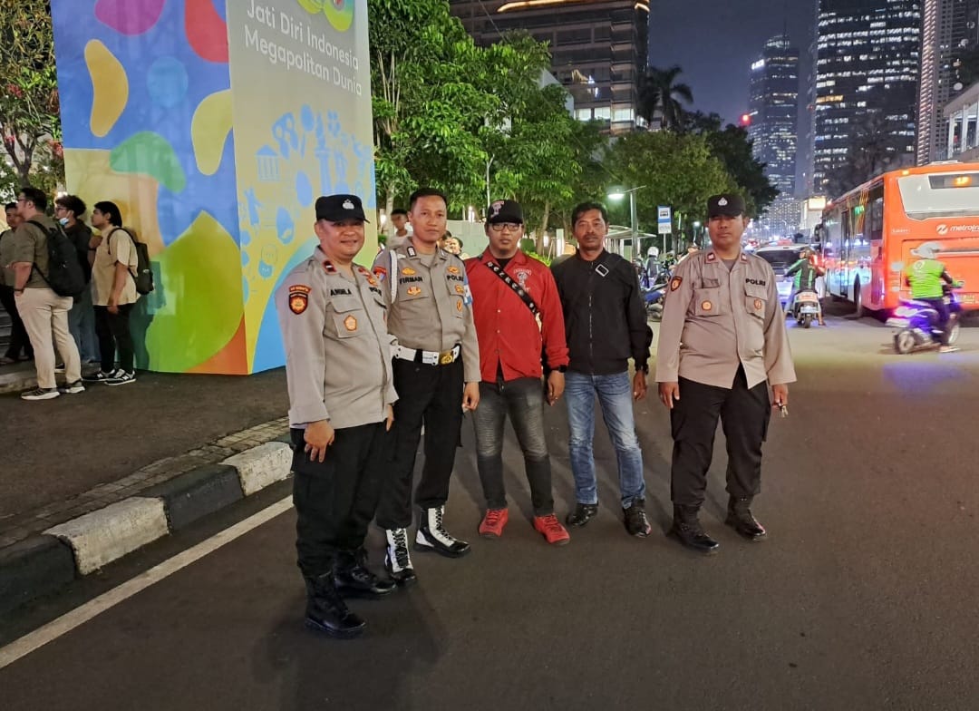 Pada hari ini, Kapolsubsektor Blora, Aiptu Heru Wicaksono, bersama dengan Kapolsubsektor Sarinah, Aipda Andri Adriandi, melakukan pemantauan terhadap kegiatan pertunjukan musik dari band J-Rocks yang digelar di Anjungan Sarinah, Jalan MH Thamrin, Menteng, Jakarta Pusat.